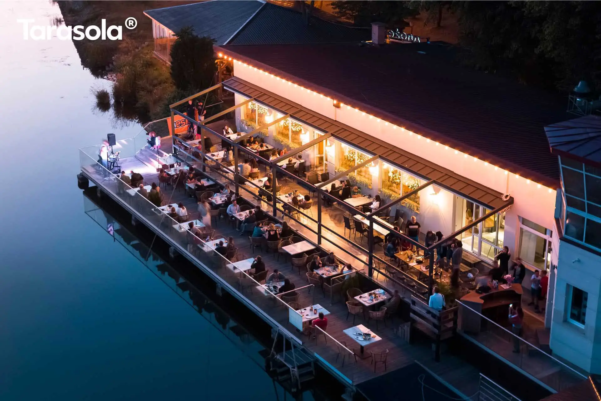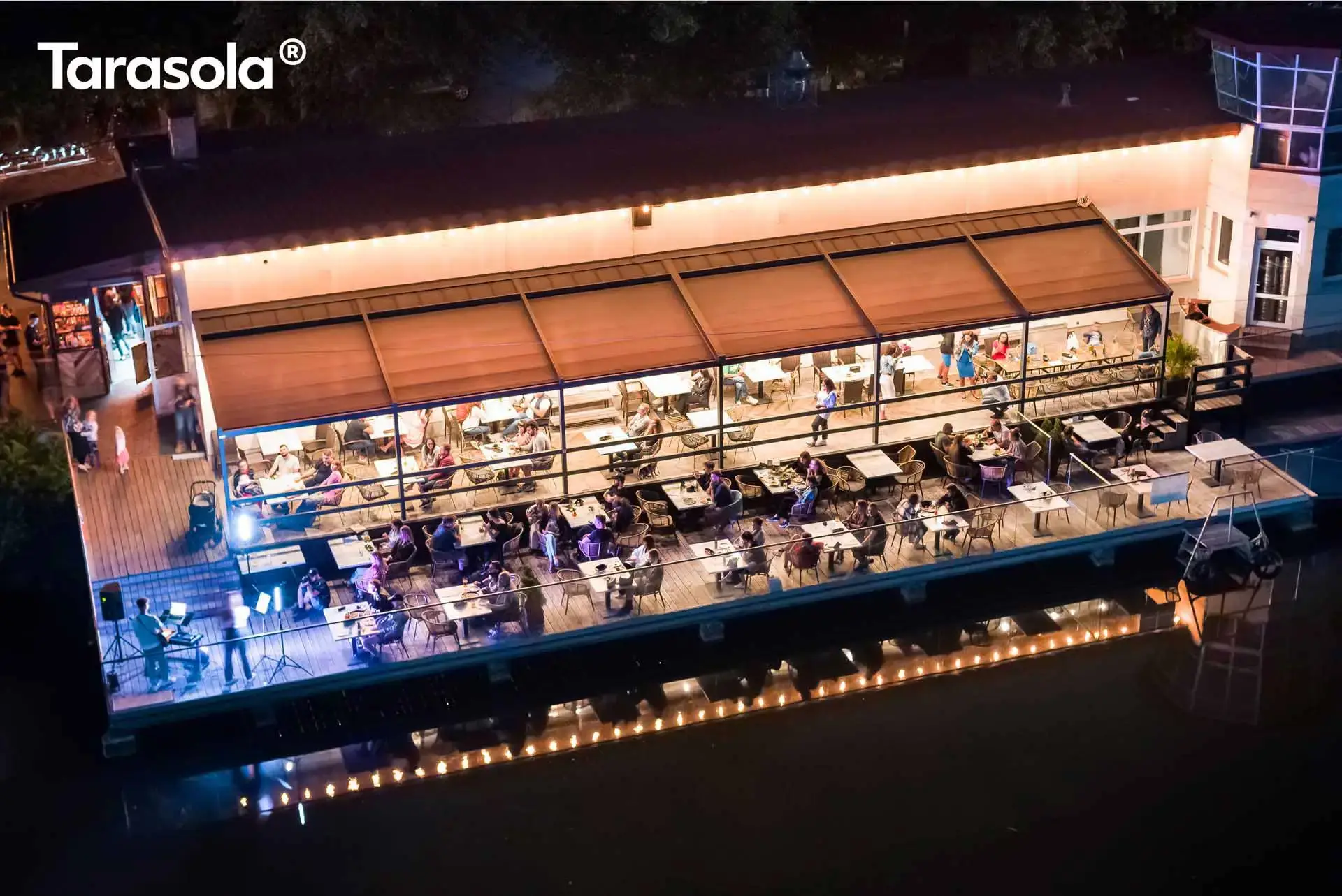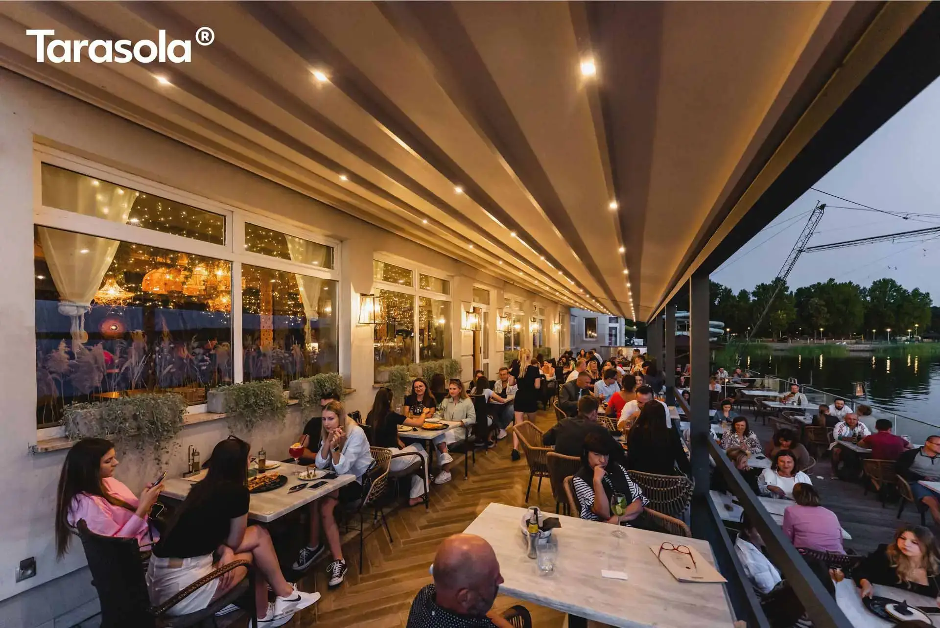 Das integrierte Rinnensystem ermöglicht eine unsichtbare Ableitung von Regenwasser, während die Anpassungsfähigkeit von Elegancy die Montage von Rollläden, Verglasungen, Wärmestrahlern und Beleuchtungsoptionen ermöglicht. Dadurch können Sie Ihren Patio nach Belieben gestalten und anpassen.