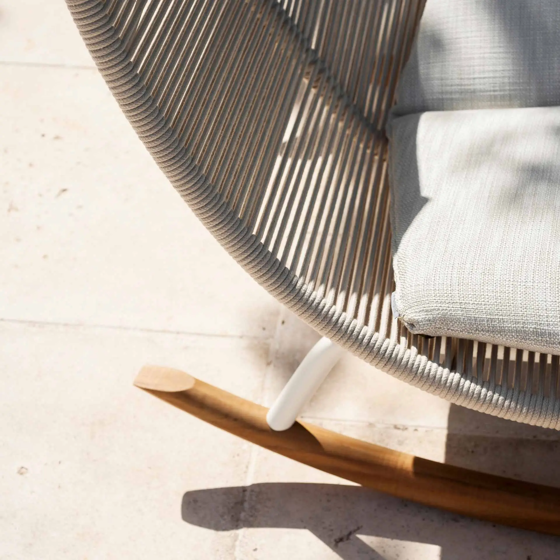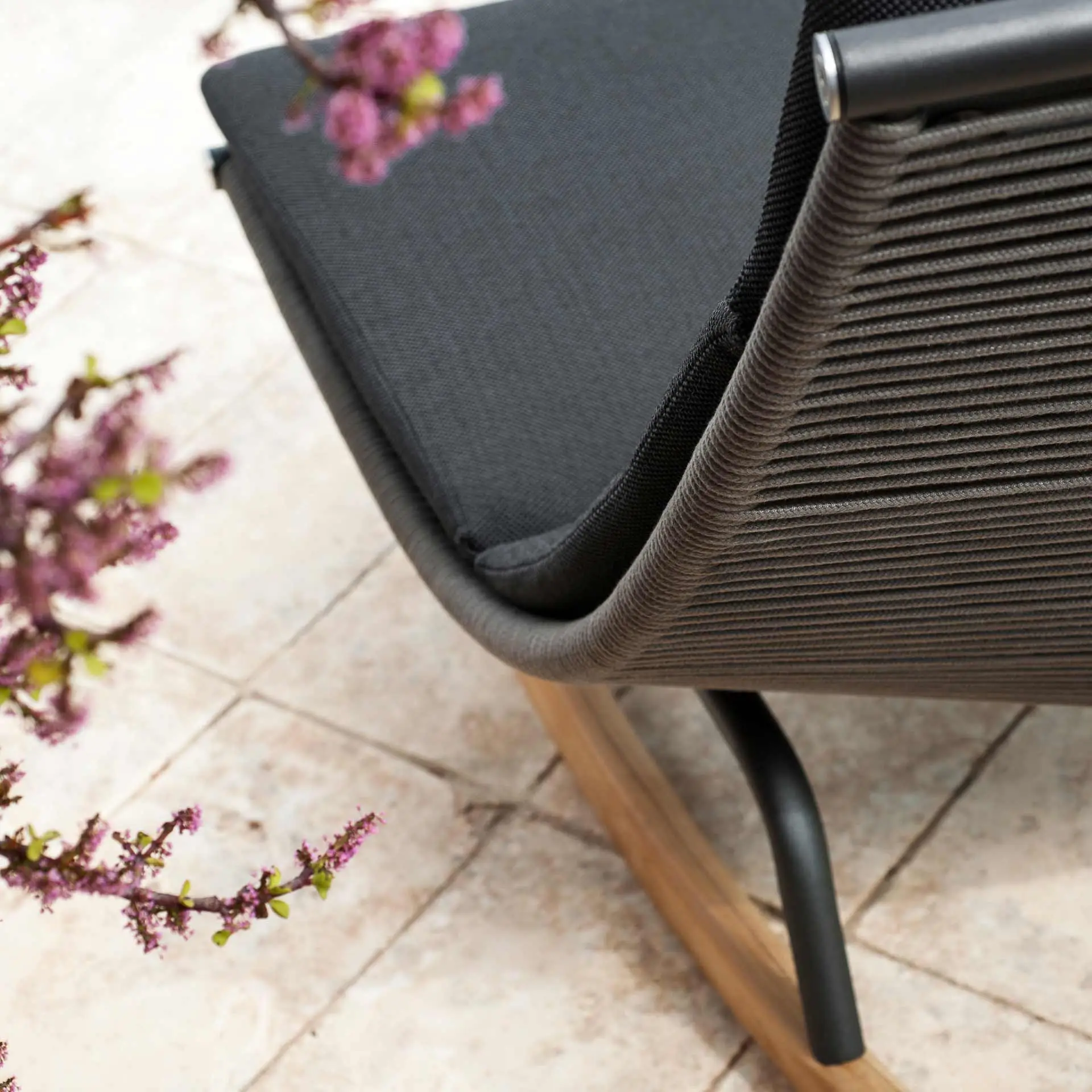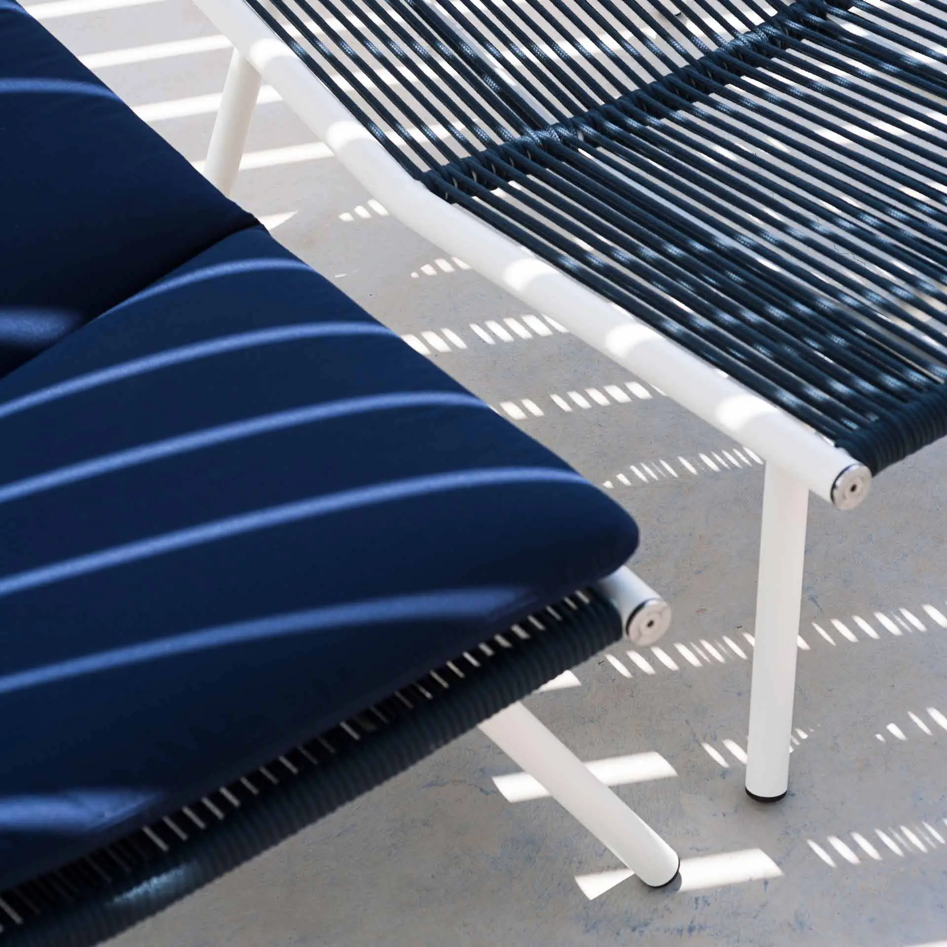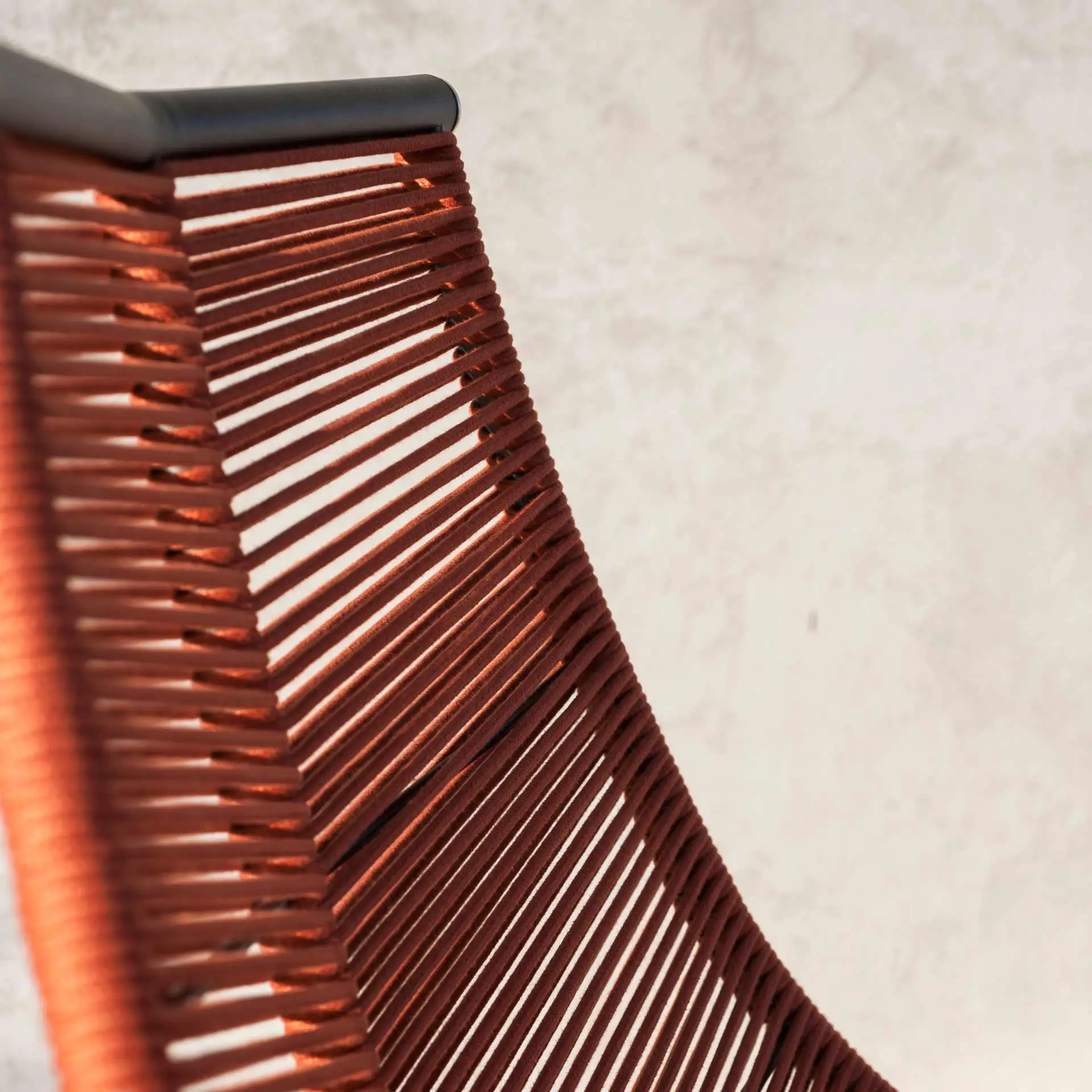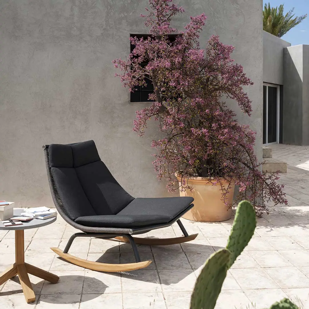 LAZE lädt Sie ein, sich auszuruhen und in einer Gartenlounge ein Buch zu lesen, während Sie sich den Luxus einer Auszeit gönnen. Die Polyesterfäden sind auf die Edelstahlschale der verschiedenen Elemente der Kollektion oder Acryl gespannt, um eine natürliche Transpiration zu ermöglichen – ideal für heiße Sommertage.